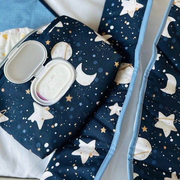 🌎❤️Neceser diseñado para guardar los elementos esenciales a la hora del cambiado. Posee dos bolsillos, uno externo para las toallitas húmedas (con abertura en el centro e interior impermeable), y el principal, para guardar pañales, oleo y demás elementos necesarios. Cierre con solapa.